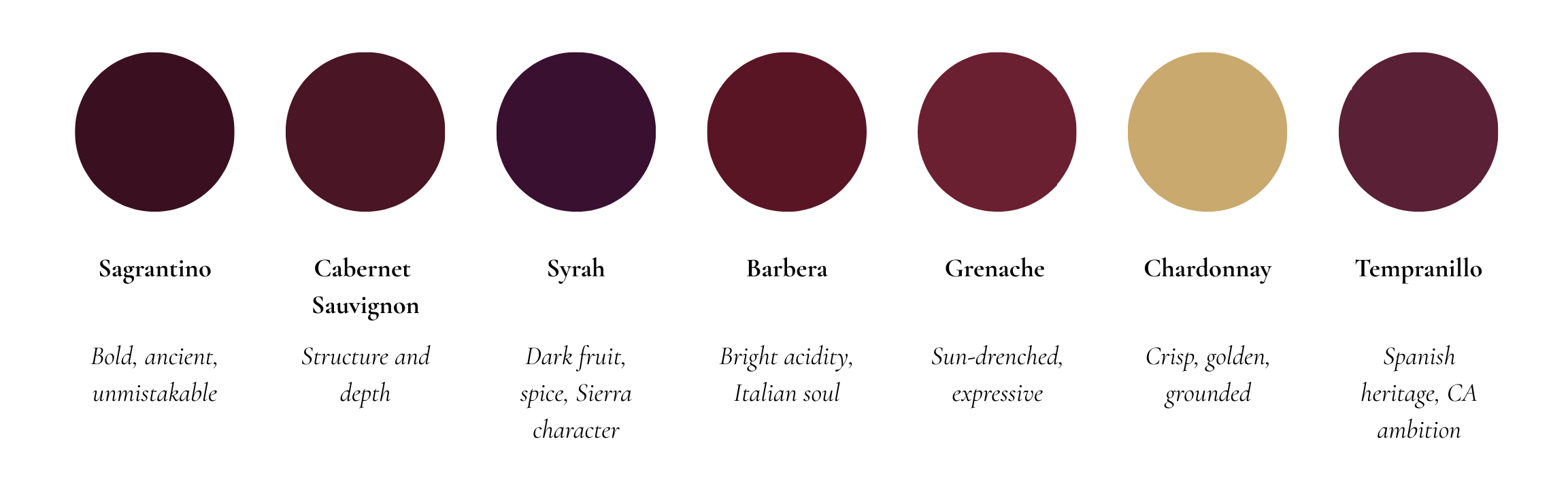 Seven estate-grown varietals, each shaped by the land where Sierra granite meets Calaveras clay.